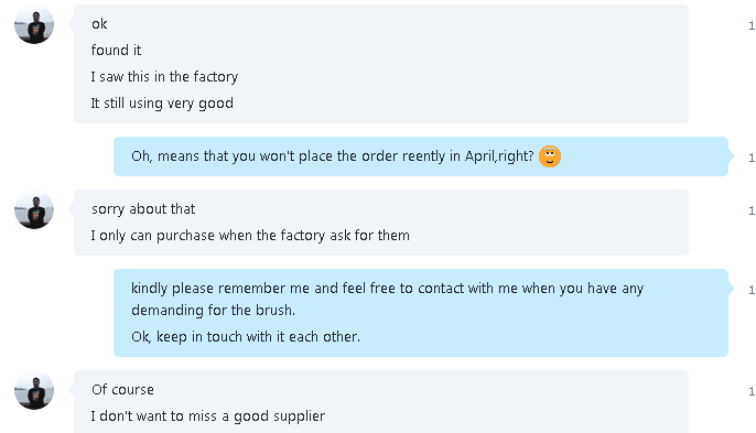 客户传来的消息:感谢贵公司给我们提供了这么优质的毛刷,贵司提供的毛刷已经在我们生产线上用了近两年了,夹毛刷清洁挡尘的功能还是一如既往的好。一旦有新的需求,一定只会选择贵司,我们决不愿意失去这么好的一个毛刷供应商!