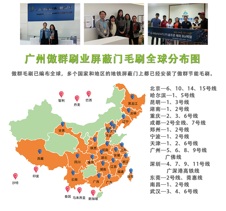 不仅为全国各地各大地铁站提供优质条刷数十万米,并凭借着可靠的品质,
